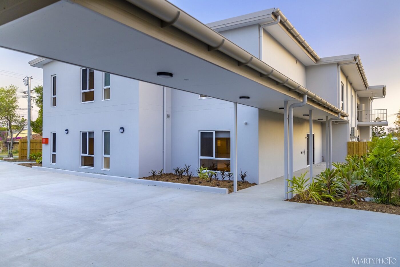This NDIS project at 2 Sunset Street, Browns Plains, is a dual level apartment building with six units in total. The structure is mostly blockwork and steel structure with painted render finish and aluminium windows and balustrading.